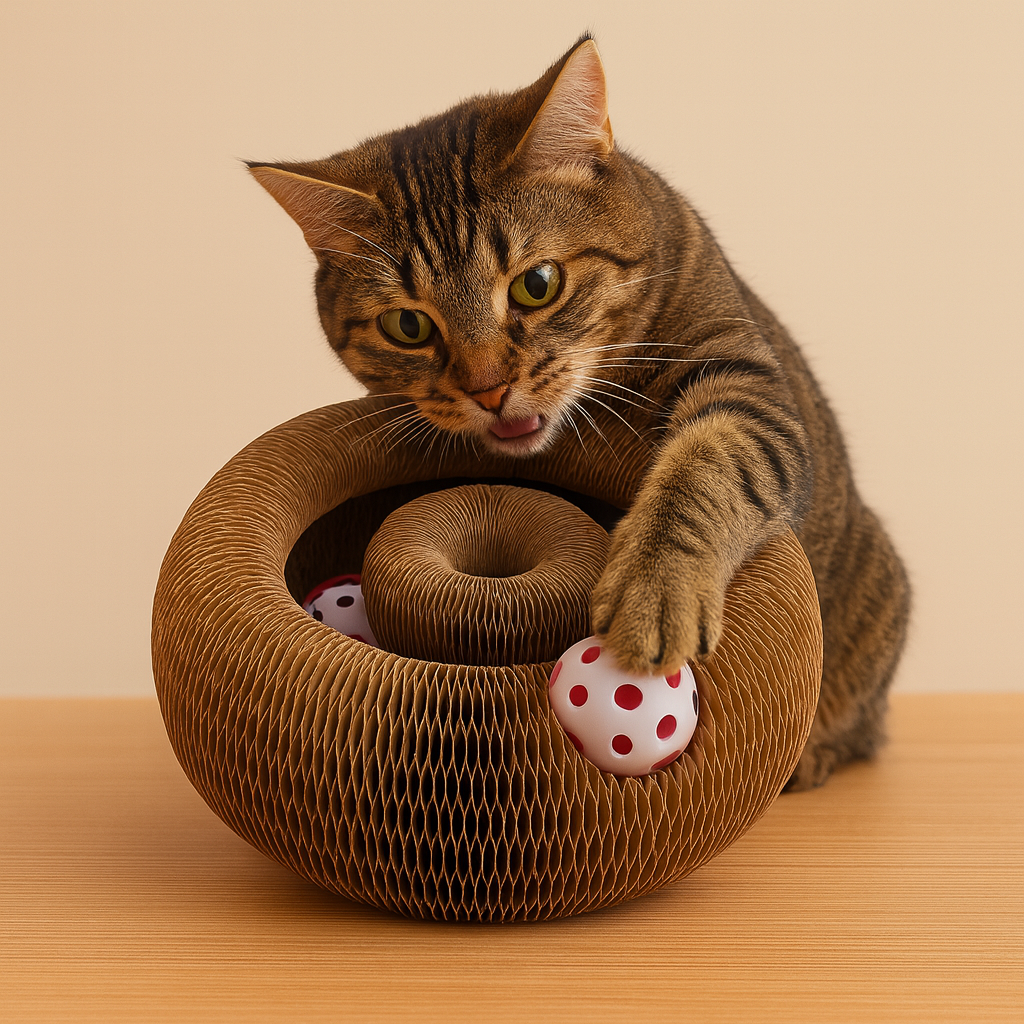I didn’t realize how much my cats needed this until I got it. This keep them busy all day — scratching, batting, and rolling around nonstop. I used to find claw marks on the couch, but not anymore. They focus all their energy on the Kat Kurls instead! They’re super sturdy, easy to clean, and still look brand new after weeks of use. It’s honestly one of the best cat toys I’ve ever bought.