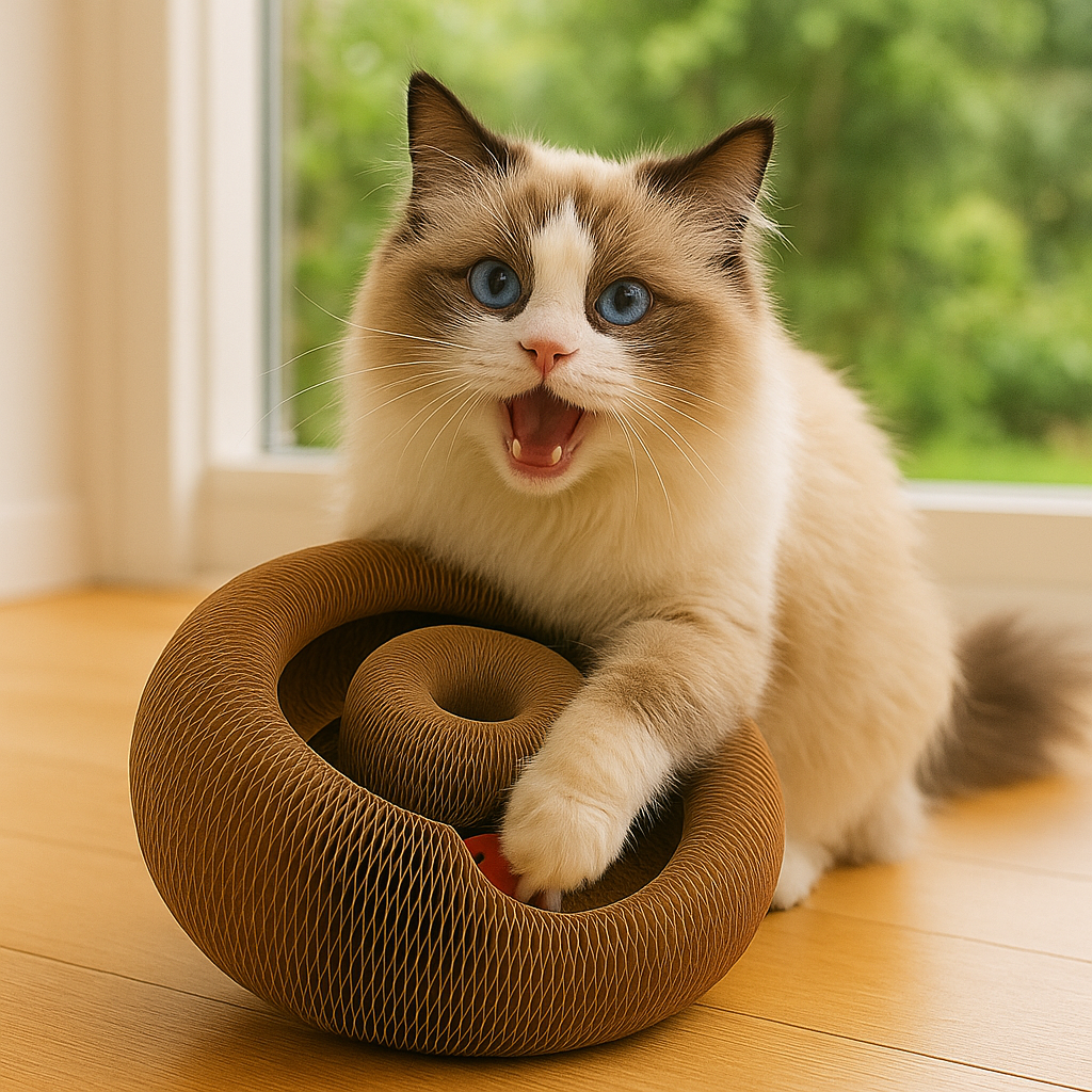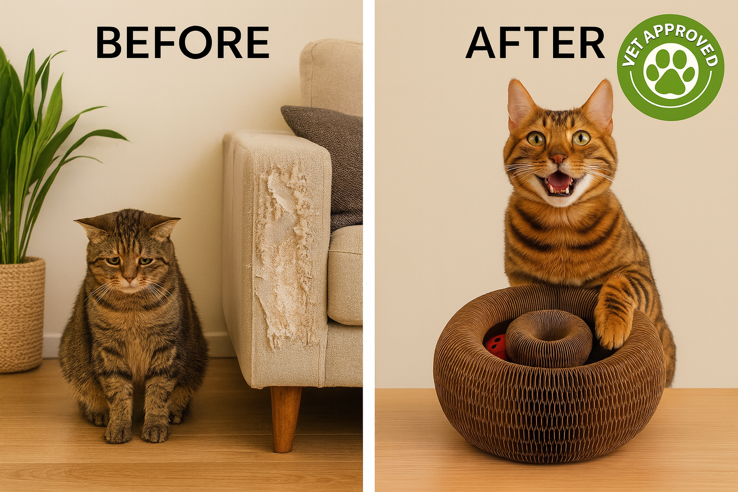 Just place it and let your cat do the rest. Every scratch releases energy, every curl brings calm. No fuss, no stress—just a happier cat and a home that feels more relaxed, day after day. Its durable design keeps joy alive and furniture safe.